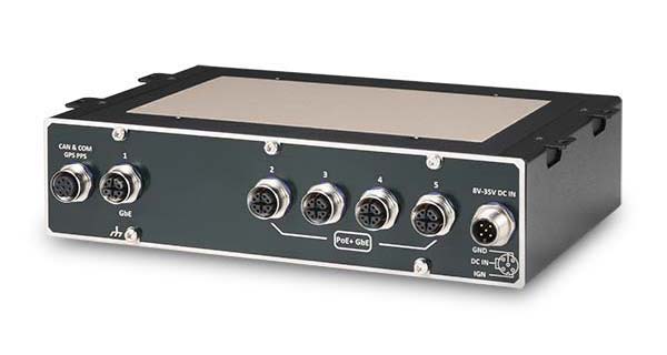 • Supports 4x PoE+ GbE via M12 X-coded connectors